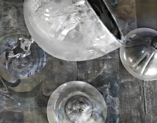 Digitally created art images has been placed here in a set together with traditional photographs.